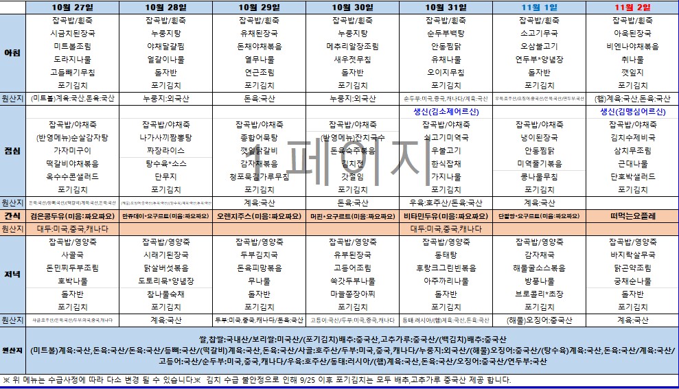 식단표