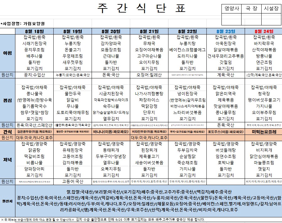식단표